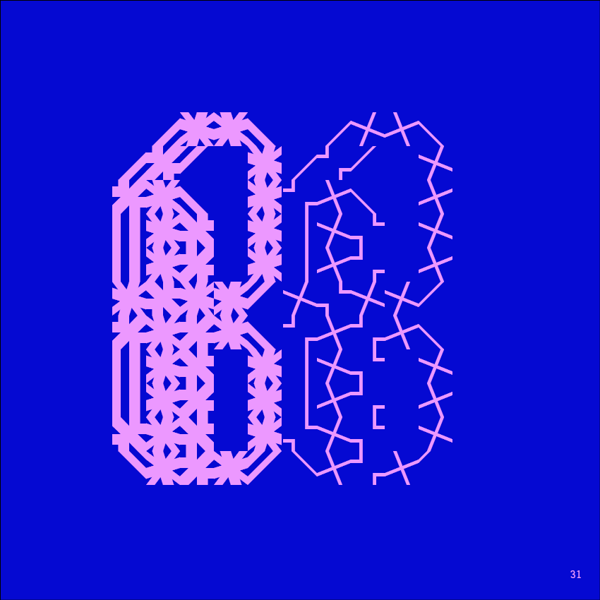 The project reflects a broader interest in modular design that runs through Strahinja Jovanović's work. In Orthoments, modular ornaments became type; in Neue Modulo, modular strokes became calligraphy; in Folium, the Fibonacci sequence shaped letterforms. Mooresque Type continues this inquiry, exploring how letters can be built from parts, how parts can generate infinite variation, how construction can be a form of expression.