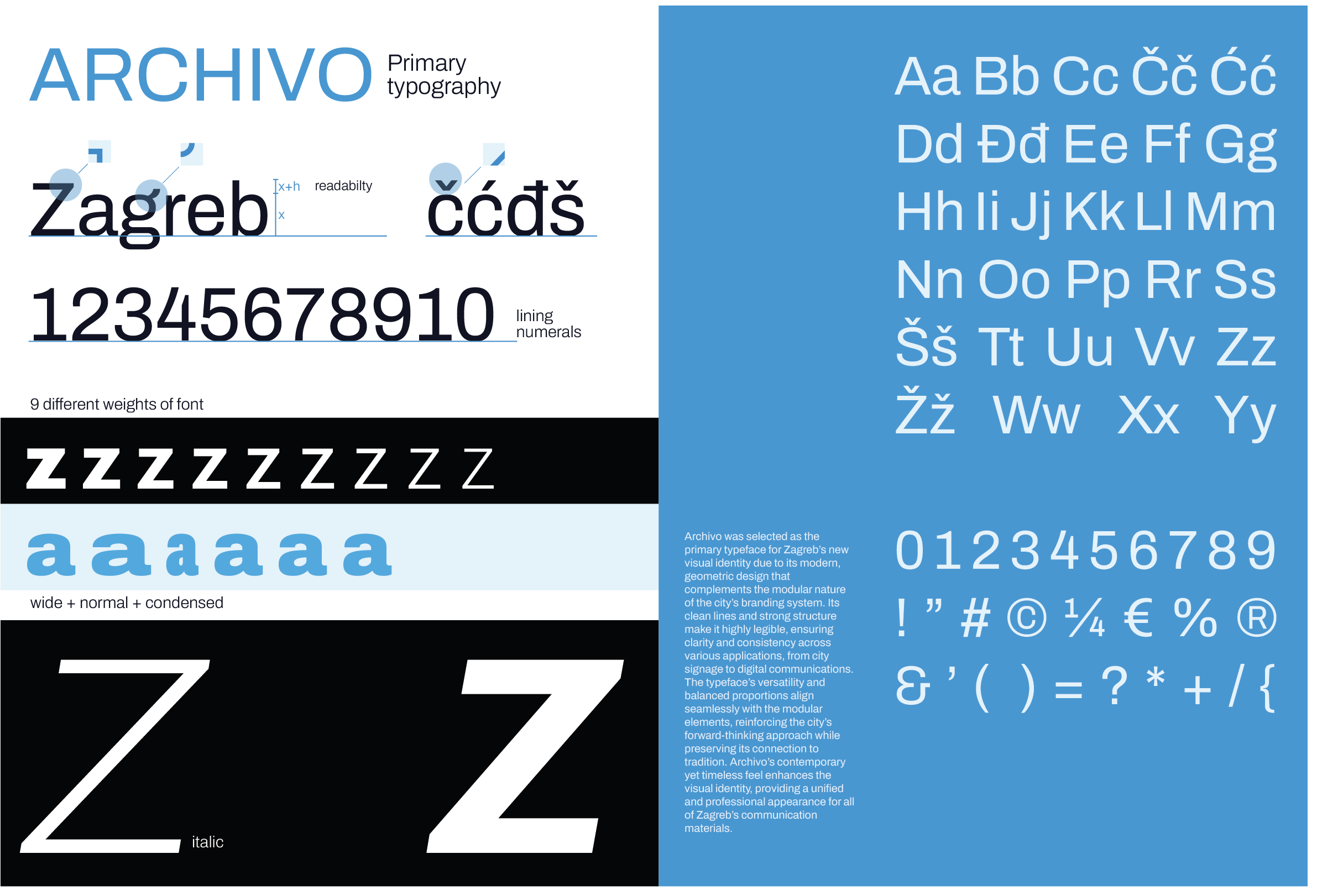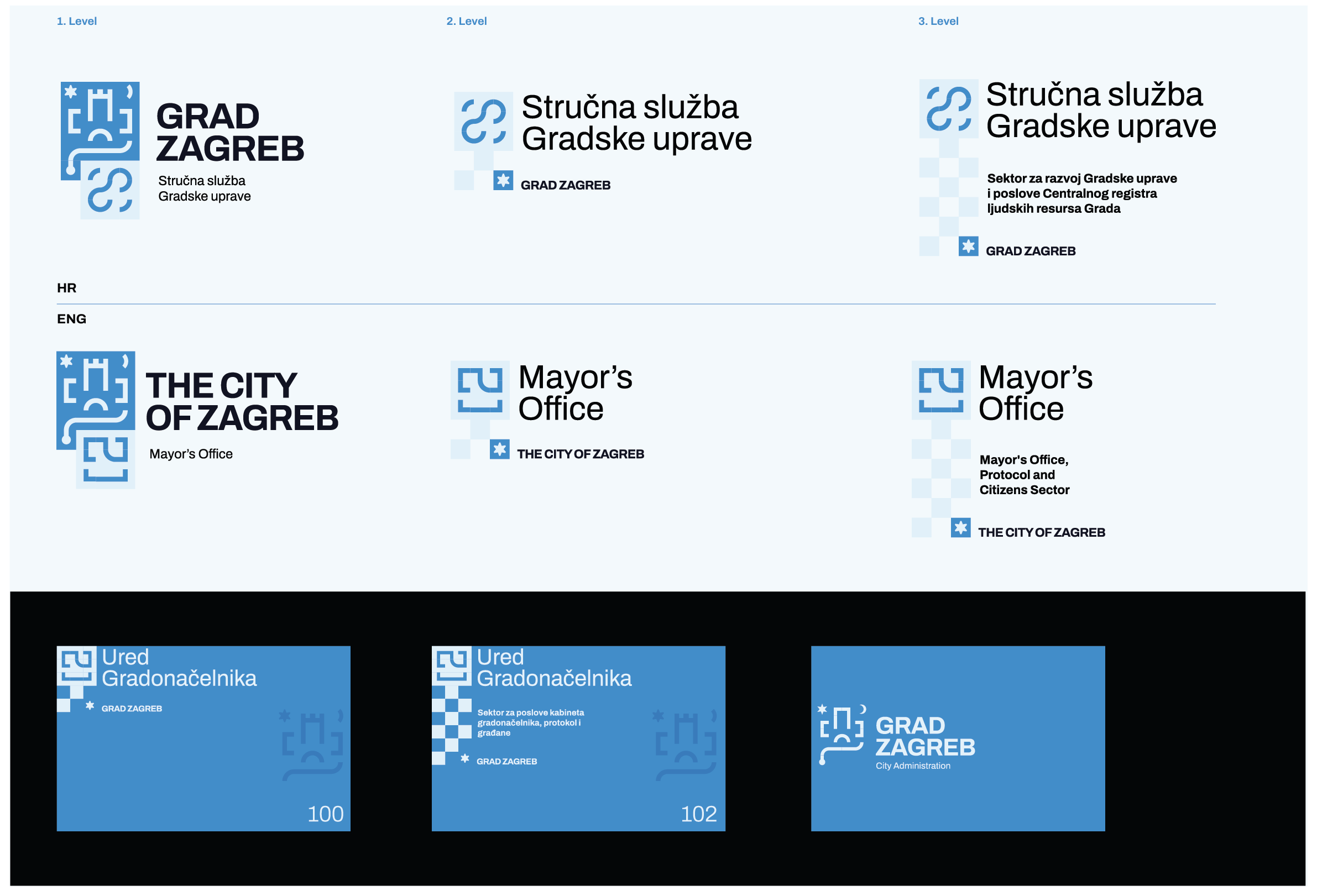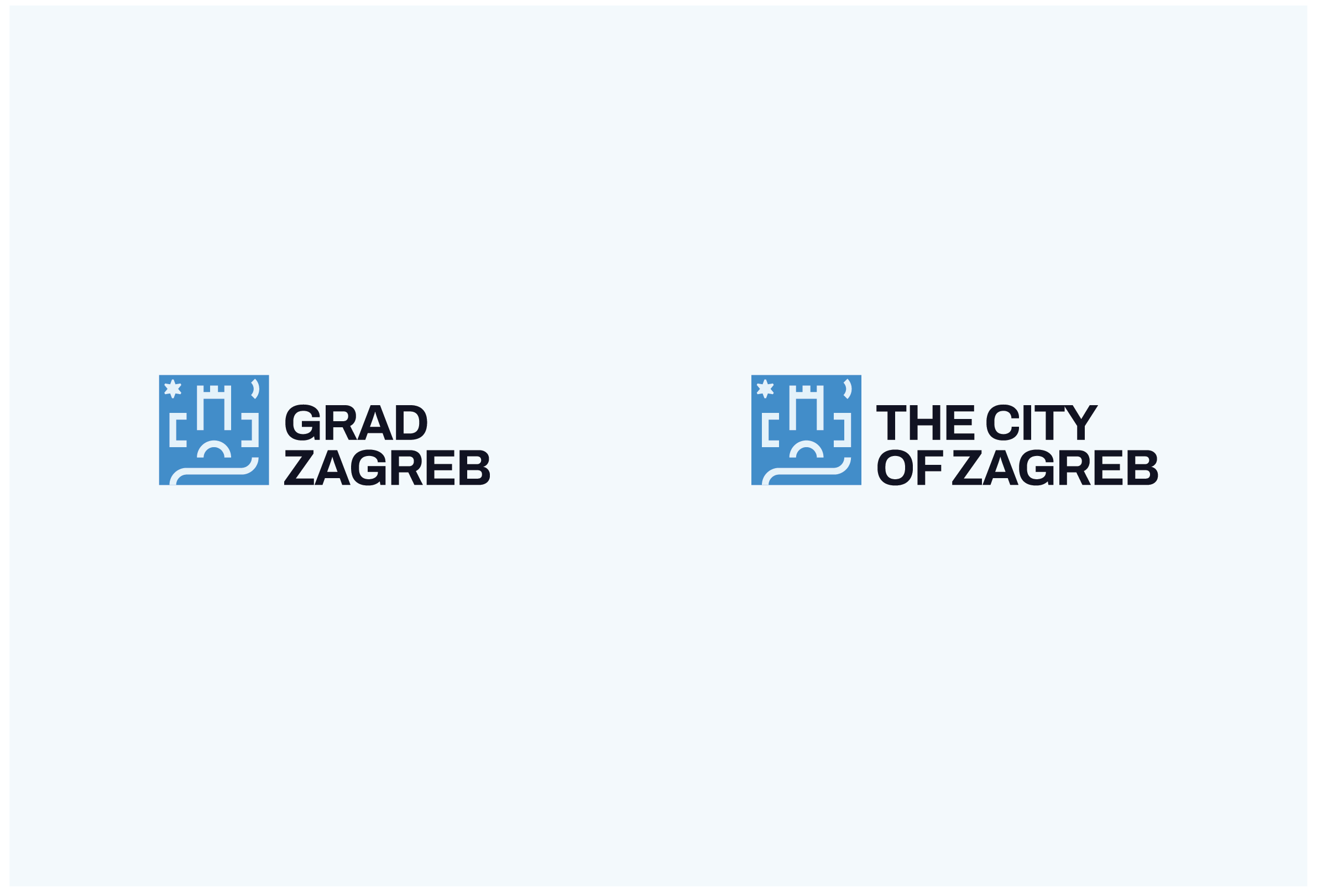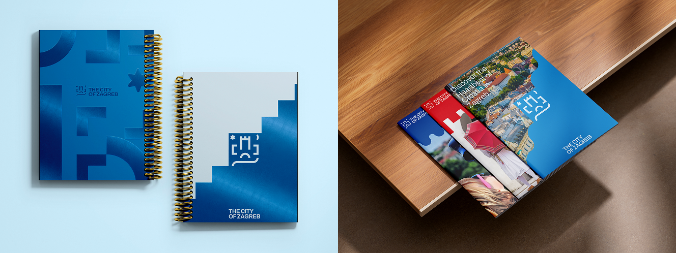 Color completes the identity. Black and white provide a timeless foundation—elegant, legible, rooted in tradition. Two blue variants, drawn from the city's signature colors, introduce vibrancy and energy. These blues speak to Zagreb's forward momentum, its cosmopolitan spirit, its embrace of the new. Together, the palette balances history and aspiration.