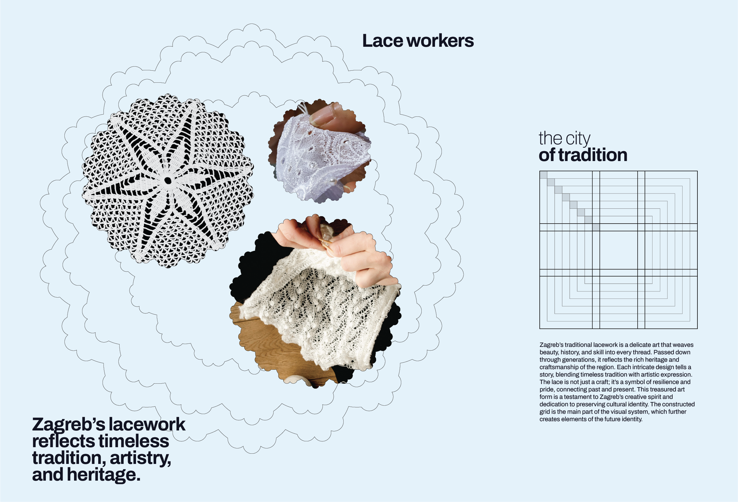 Traditional lacework, a delicate art passed down through generations, offers another layer. The intricate patterns that have long been a symbol of Zagreb's creative spirit and cultural pride find new expression in the modular system. The lace is not copied but translated—its logic of repetition, variation, and interconnection embedded in the grid.