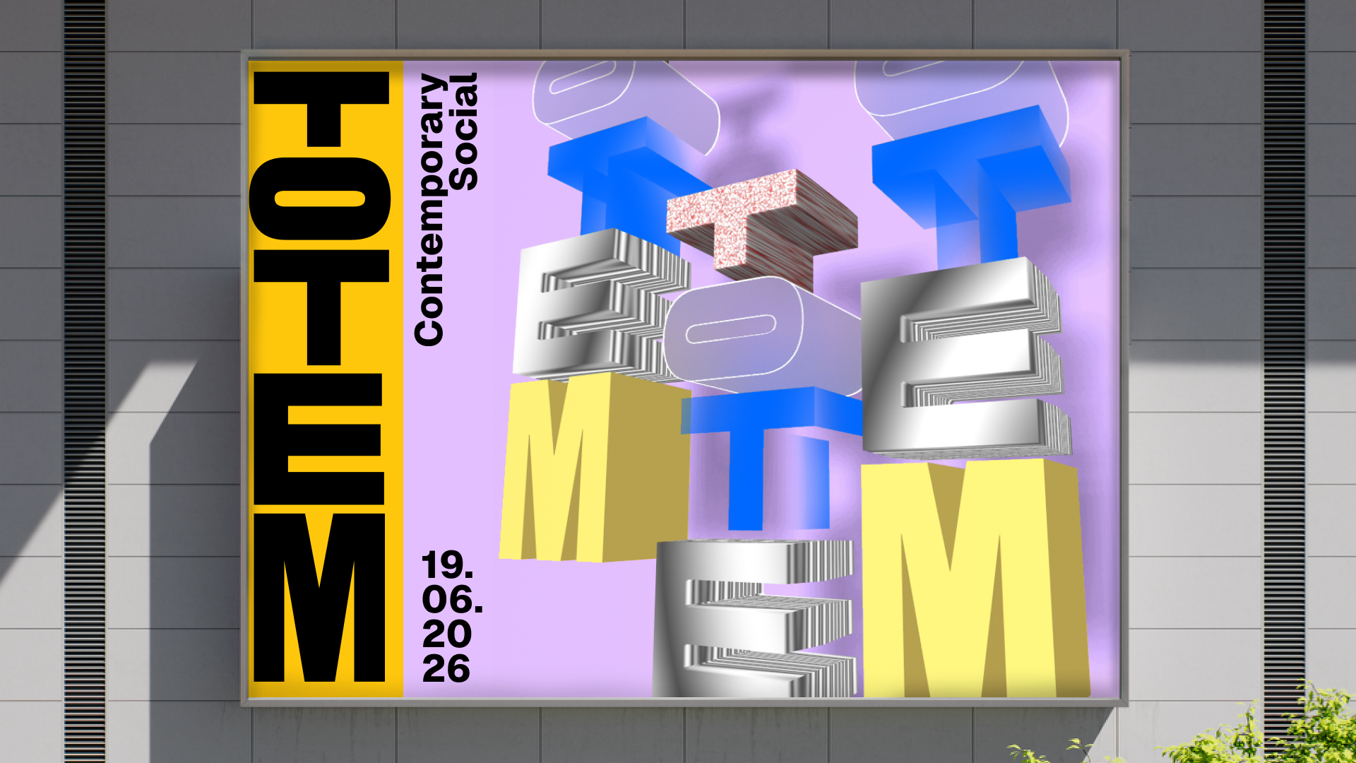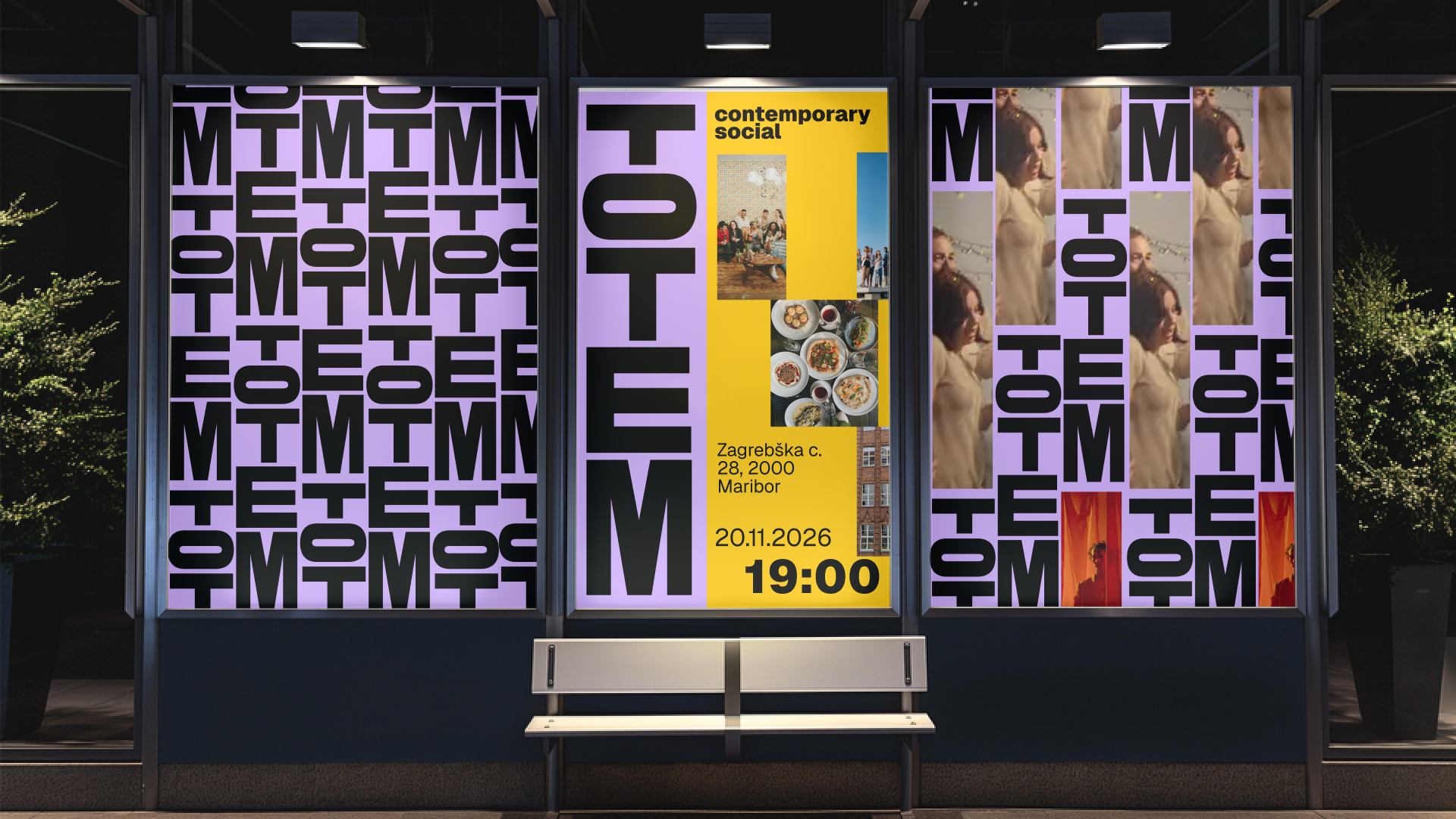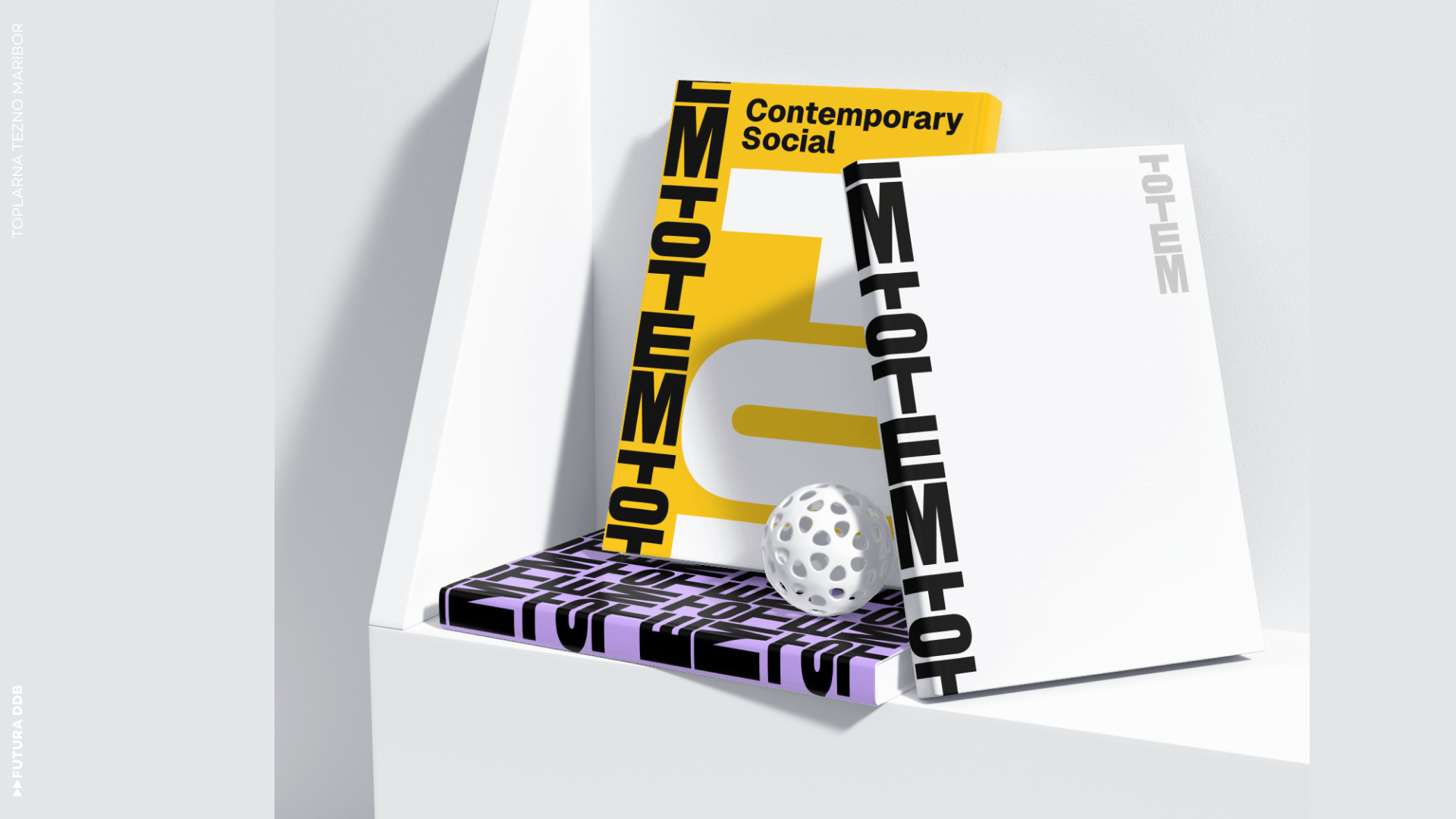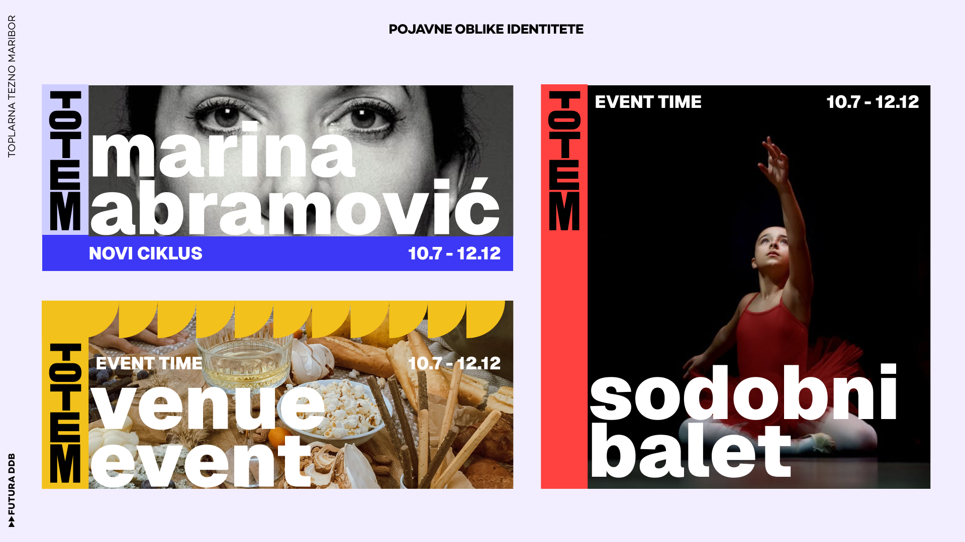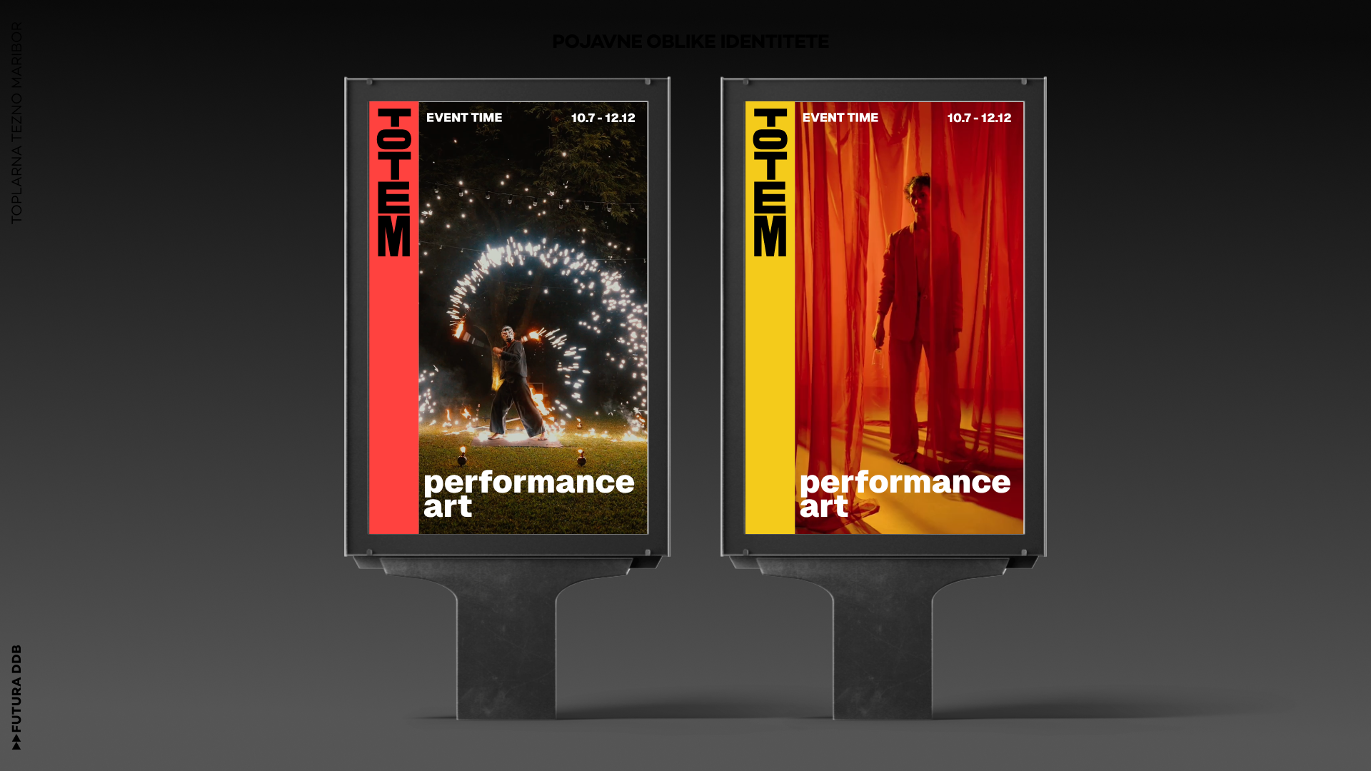 Toplarna Tezno Maribor melts into Totem—a new cultural center rising from industrial heritage. The visual identity is vertical, modular, a pole where artists place their work. A place where community gathers, where culture stacks and grows.