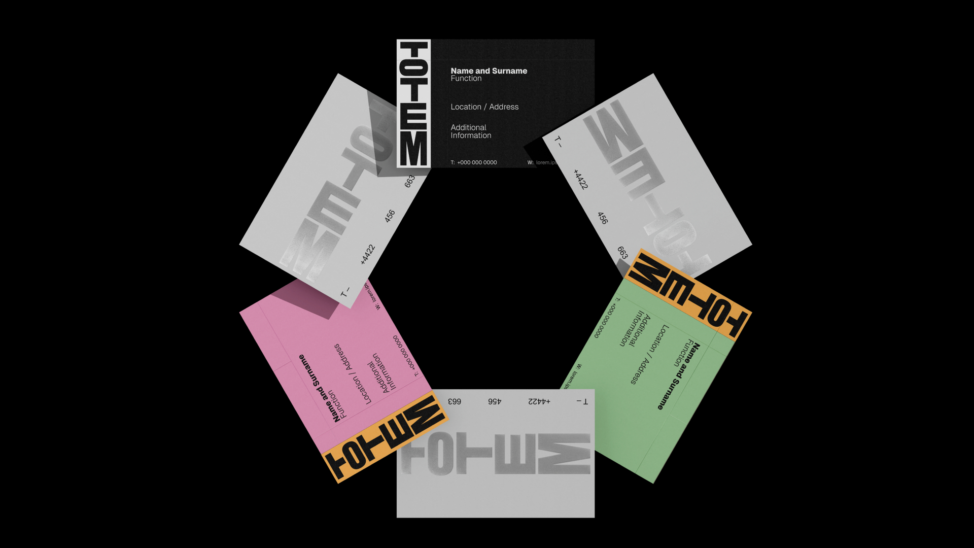 Like a totem pole, the identity is built from stacked elements—each layer an artist, an event, a story. The system adapts, expands, receives. Totem is not just a logo; it is a framework for collective expression.
